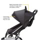 Extra-large canopy lets your child sit comfortably in the shade on the brightest days, with a flip-out visor to protect from oncoming glare.The lightweight Teeny folds and carries with one hand, and without the help of professional movers! At 15 pounds, it rivals the weight of your overstuffed handbag.Includes one HUGE cup holder. It holds a super-size ice coffee, that can be attached on the left or right side. Ultra-compact fold with one hand for easy storage. Stands on its own when folded. Comfortable, padded carry handle. Generous canopy, plus flip-out visor provides added sun protection. Blocks 96%+ of UVA/UVB rays.